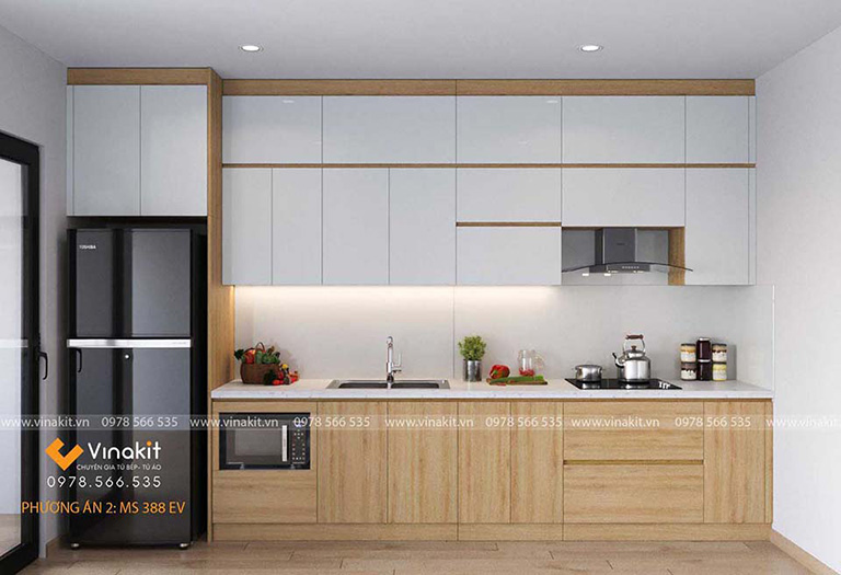 Tủ bếp chữ I cánh Melamine vân gỗ tự nhiên