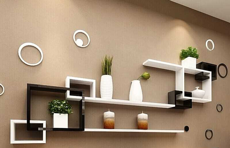 Kệ treo tường vừa tiết kiệm diện tích vừa giúp trưng bày sách, phụ kiện, lọ hoa…Sử dụng nhiều chất liệu đa dạng như: gỗ tự nhiên, gỗ công nghiệp, kim loại. Chọn các loại kệ trang trí với tạo hình độc đáo để tăng ấn tượng.
