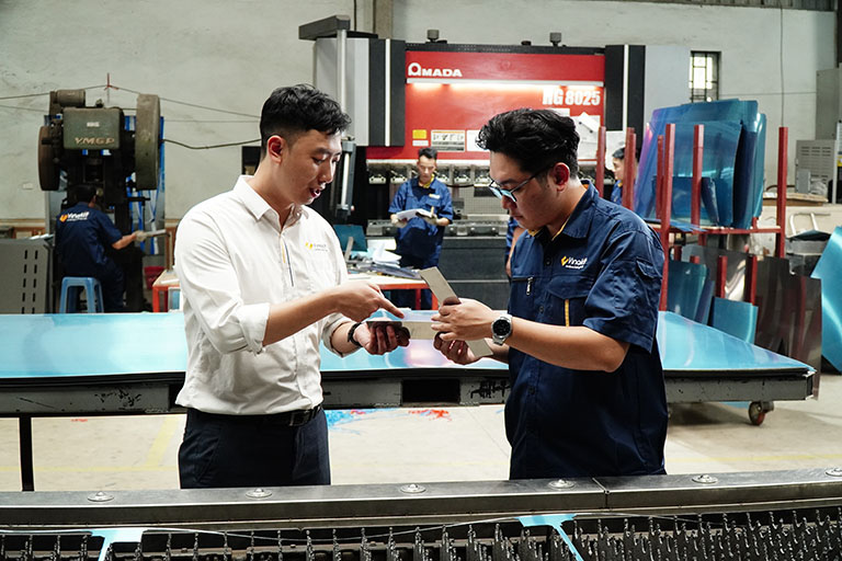 Vinakit sở hữu nhà máy sản xuất tủ bếp inox quy mô lớn tại miền Bắc, được trang bị hệ thống máy móc hiện đại như máy cắt CNC, máy chấn ép BySprint Fiber nhập khẩu từ Thụy Sĩ. Đội ngũ kỹ thuật – kiến trúc sư – thợ lành nghề tại Vinakit luôn đặt chất lượng, độ bền và sự hài lòng của khách hàng lên hàng đầu. Mỗi hệ tủ bếp tại đây đều được sản xuất theo chuẩn module thông minh, đảm bảo độ chính xác, tối ưu công năng và bền bỉ với thời gian.