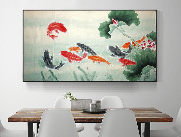 Với ý nghĩa mang đến sự thăng tiến, dư dả và phú quý, tranh phong thủy nhà bếp với hình cá chép giúp thu hút tài lộc và mang đến nhiều may mắn cho gia chủ.