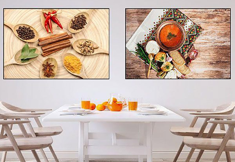 Gian bếp của bạn sẽ trở nên tươi mới hơn. Thêm cảm hứng nấu bếp với những bức tranh đồ ăn giúp kích thích vị giác và hứng khởi nấu ăn mỗi ngày.