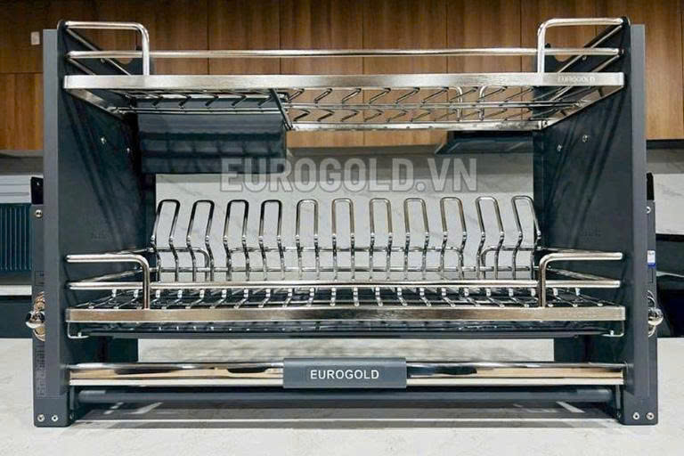 Giá bát nâng hạ Eurogold là phụ kiện bán chạy nhất bởi cơ cấu nâng hạ linh hoạt, hỗ trợ người dùng dễ dàng với các tầng bát đĩa mà không cần với cao. Hệ ray giảm chấn nhẹ nhàng giúp thao tác đóng mở êm ái, khung inox chắc chắn chịu lực tốt và đảm bảo vệ sinh khi sử dụng