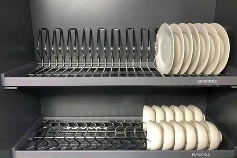 Dòng giá bát cố định Eurogold thiết kế tối giản nhưng rất bền bỉ. Với các tầng sắp xếp hợp lý, bạn dễ dàng phân loại bát và đĩa theo chiều cao. Chủ yếu làm bằng inox 304 và có nhiều kiểu kiểu như nan dẹt, hình V hoặc đa tầng tùy theo kích thước khoang tủ