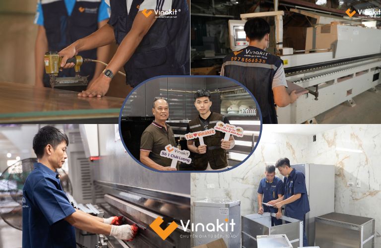 Vinakit không chỉ nổi bật về chất lượng sản phẩm mà còn mang đến cho khách hàng dịch vụ thi công nhanh chóng, hiệu quả với mức giá cạnh tranh nhất thị trường. Với sự kết hợp giữa tay nghề cao, vật liệu cao cấp và quy trình thi công chuyên nghiệp, chúng tôi cam kết mang lại cho bạn những chiếc tủ bếp đẹp, bền, tiết kiệm thời gian và chi phí, giúp không gian bếp của bạn trở nên lý tưởng và hoàn hảo.