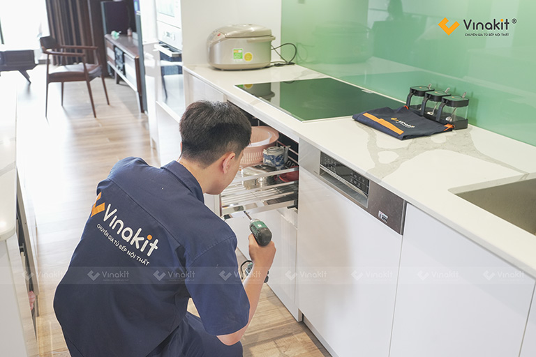 Quy trình lắp đặt: Các mối nối, khe hở và phần nẹp cạnh nếu không được xử lý kỹ càng sẽ là điểm yếu khiến tủ dễ xuống cấp, đặc biệt trong môi trường ẩm ướt của nhà bếp.