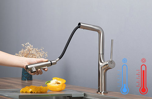 Với khả năng điều chỉnh nhiệt độ linh hoạt, vòi rửa bát nóng lạnh giúp bạn rửa bát, sơ chế thực phẩm dễ dàng hơn vào mùa đông lạnh giá, không lo buốt tay.
