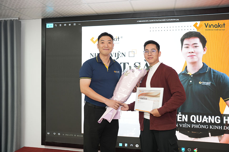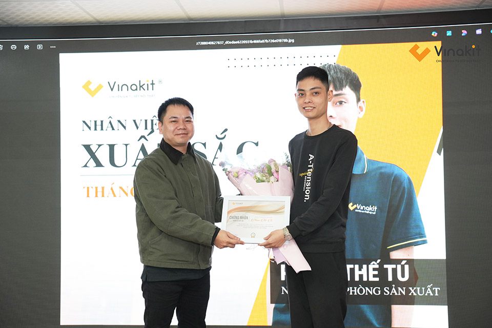 Việc tổ chức trao giải Nhân viên Xuất sắc hàng tháng là một trong những hoạt động tiêu biểu thể hiện văn hóa doanh nghiệp Vinakit – luôn đề cao giá trị con người, lấy nhân sự làm nền tảng cho sự phát triển dài hạn. Thông qua hoạt động này, Vinakit mong muốn tạo dựng môi trường làm việc tích cực, công bằng, nơi mọi nỗ lực đều được ghi nhận và xứng đáng tôn vinh.